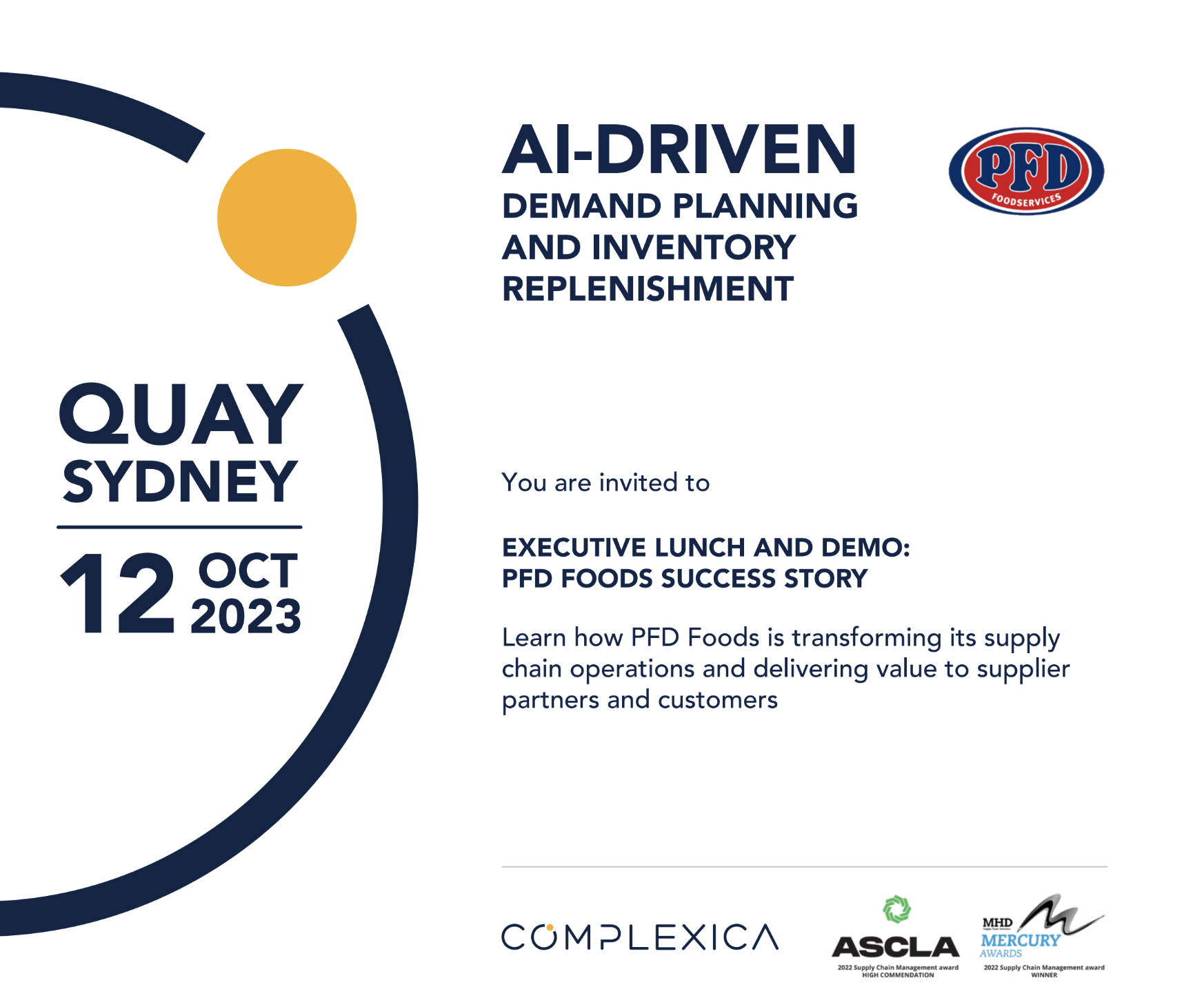 - Live Demo - Complexica's Demand Planning and Inventory Replenishment system at PFD Foods presented by Anthony Layton, National Inventory Manager at PFD Food Services.